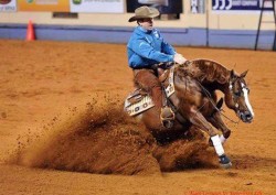 COLONELS SMART SPOOK is a son of SMART SPOOK, earner of $405,079: NRHA Futurity Champion; NRHA Derby Champion; AQHA World Champion Junior Reining; 2007 & 2008 & 2009 FEI World Open Reining Masters Champion; NRHA Futurity Open Reserve Champion, National Reining Breeders Classic Open Derby finalist, etc. 91.5 points: Superior Reining. 2011 NRHA #4 Leading Reining Sire, siring the earners of $1,350,000, including CUSTOM SPOOK ($143,240: 4th, NRHA Open Futurity; 2011 High Roller Classic Open Derby Champion), SPOOK OFF SPARKS ($141,839: 2011 NRHA Futurity Co-Reserve Champion; 2011 Scottsdale Classic Open Futurity Champion), RED STRIPE SPOOK ($139,113: NRHA Open Futurity Reserve Champion), SPOOK N SPARKS ($96,512: 2011 NRHA Non-Pro Futuirty Champion), JACS LIL SPOOK ($87,039: 2011 NRBC Intermediate Open Derby Reserve Champion, Champion in the Limited Open), SPOOKS ECLIPSE ($73,102: 2012 NRBC Limited Open Derby Champion), SPOOK A LITTLE ($52,401: 2012 EURO Open Derby Champion; 3rd, Italian NRHA Open Derby), ITS ALL ABOUT SMART ($49,709: top 10, 2012 NRBC Intermediate Open Derby), DANCE LITTLE SPOOK ($47,585: 2011 Italian Open Futurity Champion).